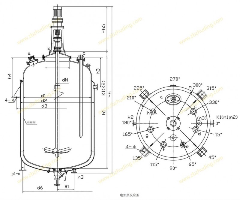 K50L-K5000L電加熱搪玻璃反應(yīng)釜(電加熱搪瓷反應(yīng)釜)設(shè)計(jì)圖紙及參數(shù)如下所示: