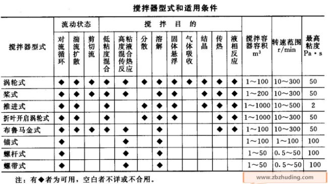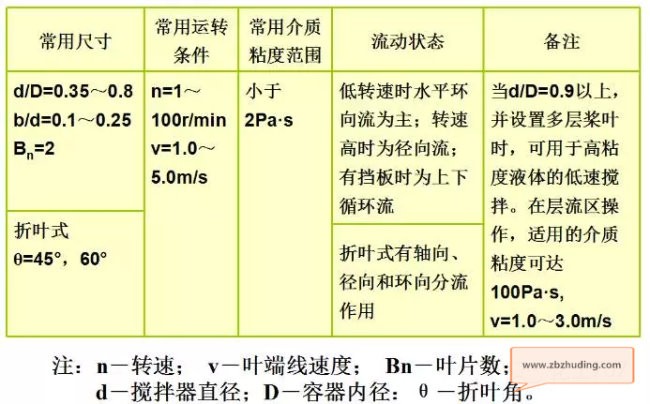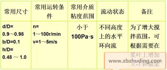 槳式攪拌器的轉速一般為20~100r/min ,其常用參數見下表: