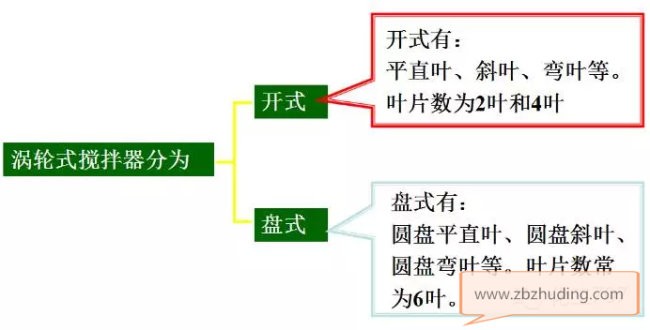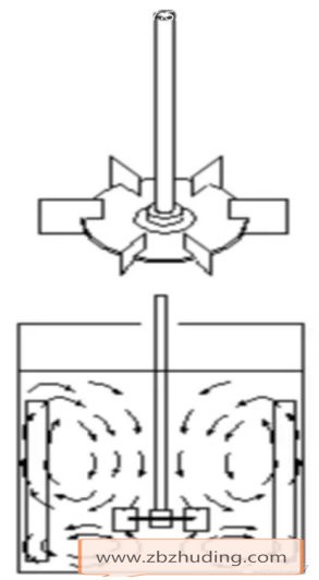 渦輪攪拌器速度較大,300~600r/min。直葉和彎葉渦輪攪拌器主要產生徑向流,折葉渦輪攪拌器主要產生軸向流。